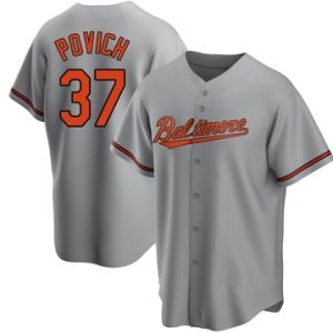 Men Orioles Cade Povich Replica Road Gray Jersey