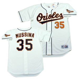 Men Orioles Mike Mussina Throwback 1999 White Jersey