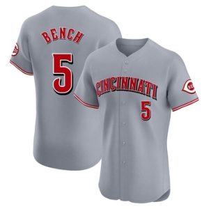 Men Reds Johnny Bench Elite Road Gray Jersey
