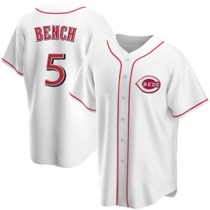 Men Reds Johnny Bench Replica Home White Jersey