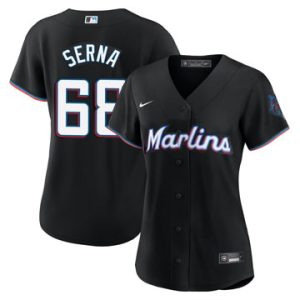 Women Marlins JaRed Jersey Serna Limited Alternate Black Jersey