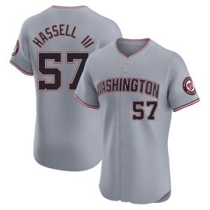 Men Nationals Robert Hassell III Elite Road Gray Jersey