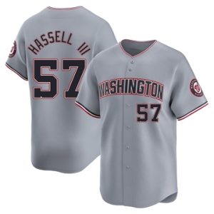 Men Nationals Robert Hassell III Limited Road Gray Jersey