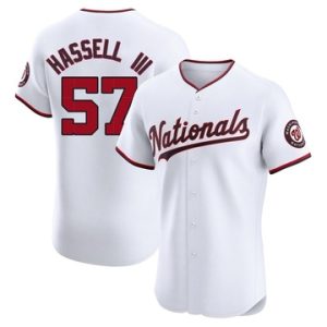 Men Nationals Robert Hassell III Elite Home White Jersey