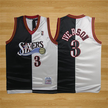 Men 76ers Allen Iverson Throwback 2000 Split Black/White Jersey
