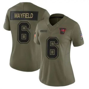 Women Buccaneers Baker Mayfield Vapor Limited 2025 Salute to Service Olive Jersey $39.90