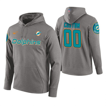 Home Miami Dolphins Custom Men Dolphins Custom Hoodie Gray Jersey