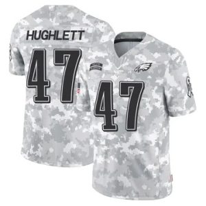 Men Eagles Charley Hughlett Vapor Limited Super Bowl LIX Patch 2024 Salute to Service Arctic Camo Jersey $39.90