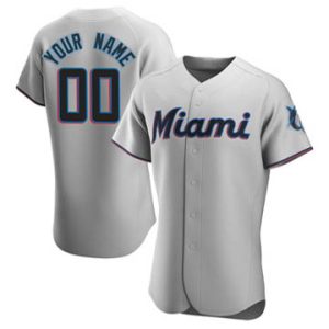 Men Marlins Custom Elite Road Gray Jersey