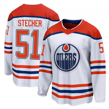 Home Edmonton Oilers Troy Stecher Men Oilers Troy Stecher Authentic 2025 Stanley Cup Final Reverse Retro White Jersey