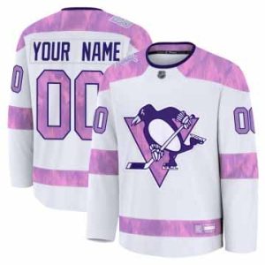 Men Penguins Custom Fights Cancer White Jersey $60.00