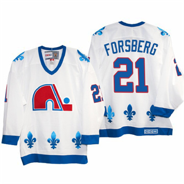 Men Quebec Peter Forsberg Throwback White Jersey