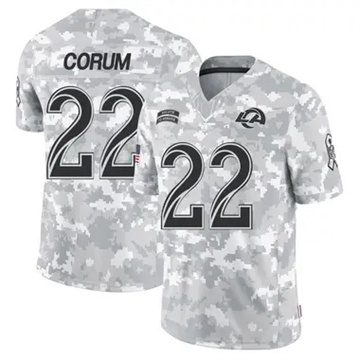 Home Los Angeles Rams Blake Corum Men Rams Blake Corum Vapor Limited 2024 Salute to Service Arctic Camo Jersey