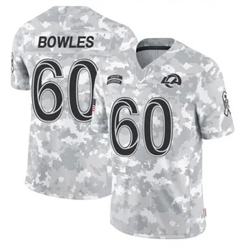 Home Los Angeles Rams Wyatt Bowles Men Rams Wyatt Bowles Vapor Limited 2024 Salute to Service Arctic Camo Jersey
