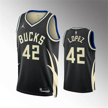 Home Milwaukee Bucks Robin Lopez Men Robin Lopez 2022-23 Statement Edition Black