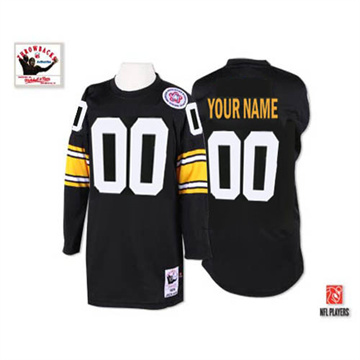 Home Pittsburgh Steelers Custom Men Steelers Custom Throwback Long Sleeve 1975 Black Jersey
