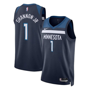 Men Timberwolves Terrence Shannon Jr. Icon Edition Navy Blue Jersey