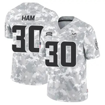 Home Minnesota Vikings C.J. Ham Men Vikings C.J. Ham Vapor Limited 2024 Salute to Service Arctic Camo Jersey