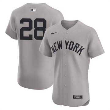 Men Yankees Custom Elite Away Gray Jersey