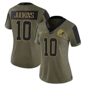 Women Browns Quinshon Judkins Vapor Limited 2021 Salute to Service Olive Jersey $39.90