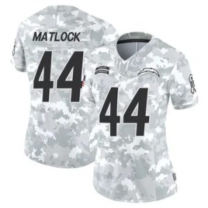 Women Chargers Scott Matlock Vapor Limited 2024 Salute to Service Arctic Camo Jersey $39.90