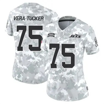 Home New York Jets Alijah Vera-Tucker Women Jets Alijah Vera-Tucker Vapor Limited 2024 Salute to Service Arctic Camo Jersey