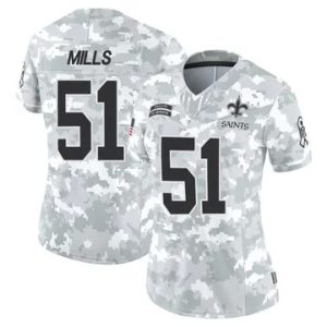Women Saints Sam Mills Vapor Limited 2024 Salute to Service Arctic Camo Jersey $39.90