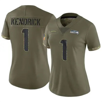 Home Seattle Seahawks Derion Kendrick Women Seahawks Derion Kendrick Vapor Limited 2022 Salute to Service Olive Jersey