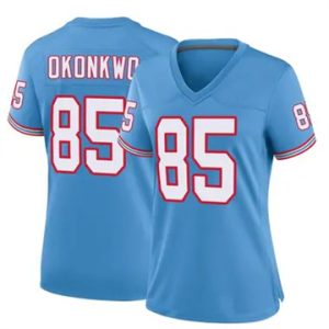 Women Titans Chig Okonkwo Throwback Game Light Blue Jersey $39.90