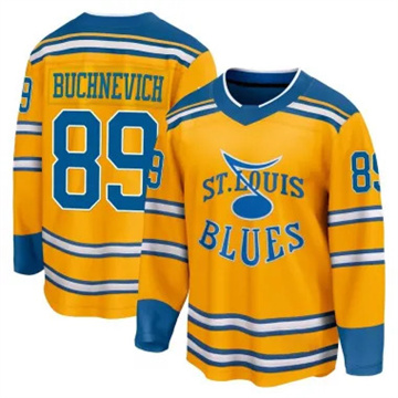 Home St. Louis Blues Pavel Buchnevich Youth Blue Jerseys Pavel Buchnevich Authentic Reverse Retro 2.0 Yellow Jersey