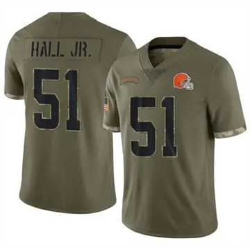 Youth Browns Mike Hall Jr. Vapor Limited 2022 Salute to Service Olive Jersey