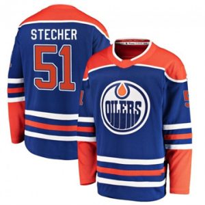 Men Oilers Troy Stecher Authentic 2025 Stanley Cup Final Home Royal Jersey $49.00